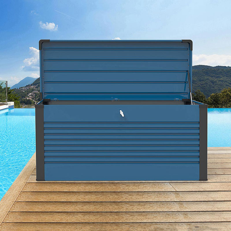 The Patio Box is a top-opening storage unit, with stainless steel fixings, a gas strut assisted hinged lid. It also includes a double-bolted key lock for added security.